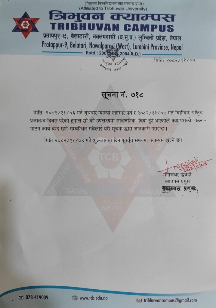लोहसार पर्वकाे विदा सम्बन्धि सूचना । महाशिवरात्री विदा सम्बन्धमा । लोहसार पर्वकाे विदा सम्बन्धि सूचना । महाशिवरात्री विदा सम्बन्धमा ।